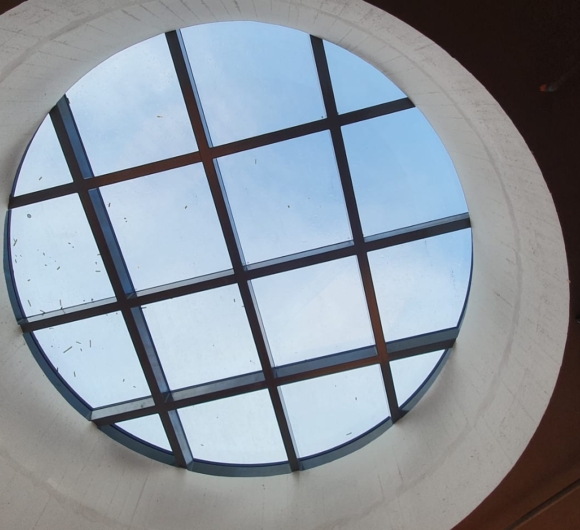 Runde Dachoblichter über Markthalle