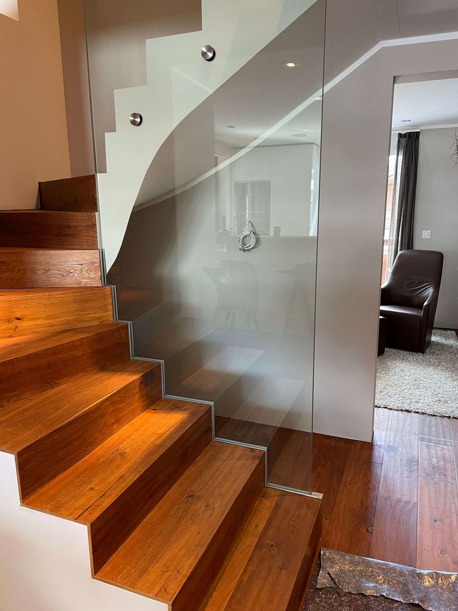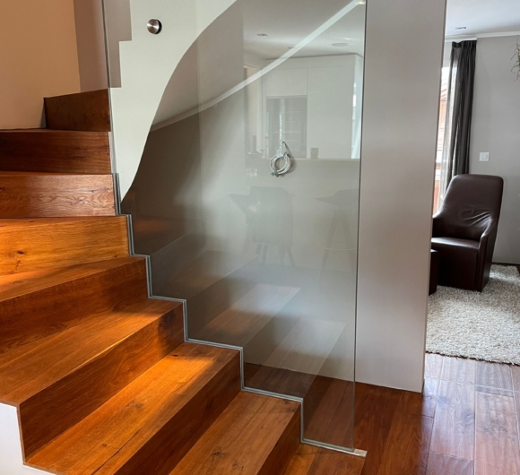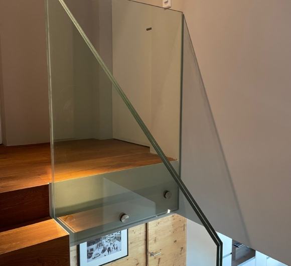 Treppengeländer aus VSG Glas Ganzglas mit Punkthalterungen